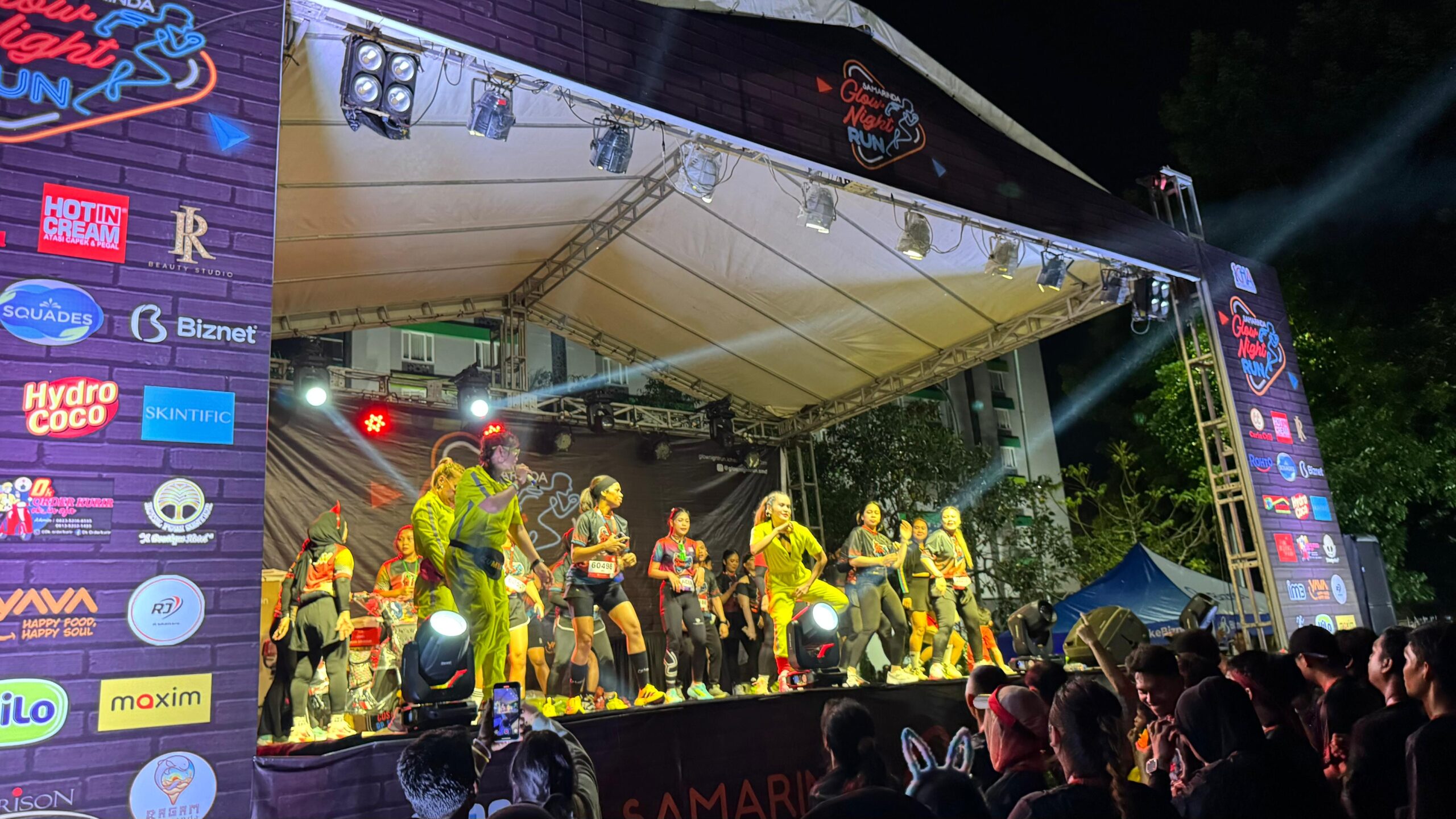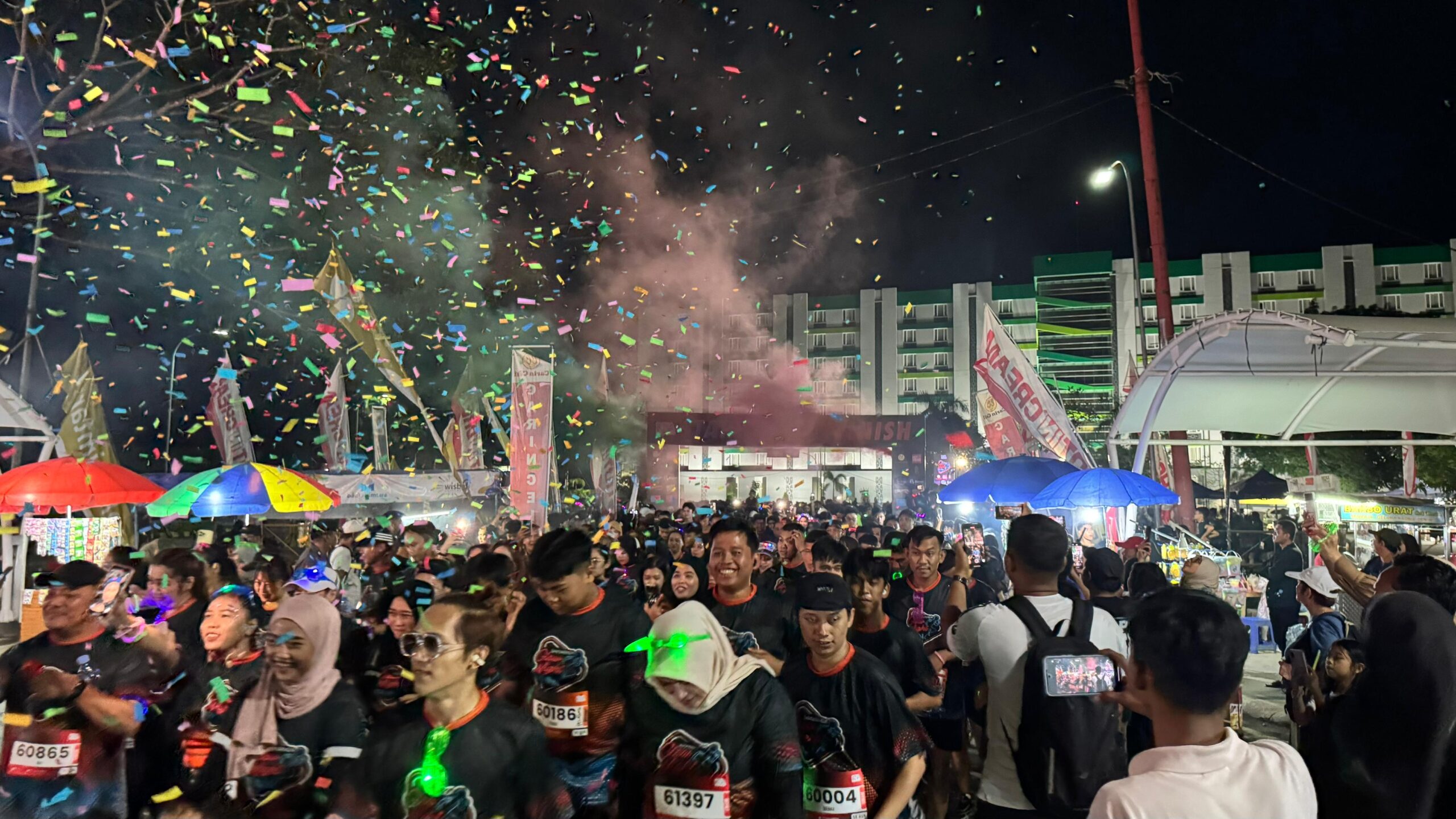 Berbeda dari biasanya yang diadakan pagi hari, ajang ini menghadirkan sensasi baru: lari malam dalam nuansa glow in the dark. Para peserta dibekali dengan kacamata bercahaya dan aksesori menyala, menciptakan pemandangan menakjubkan saat malam mulai gelap.