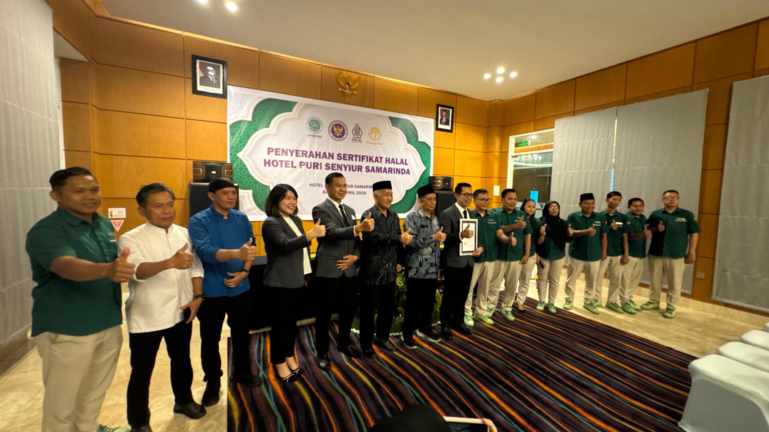 Sertifikat halal ini diserahkan dalam kegiatan yang digelar di Kedang Kepala Room, Hotel Puri Senyiur Samarinda, Rabu pagi (22/04/2026), disaksikan oleh jajaran Majelis Ulama Indonesia (MUI), LPPOM MUI Kaltim, manajemen hotel, serta rekan media.